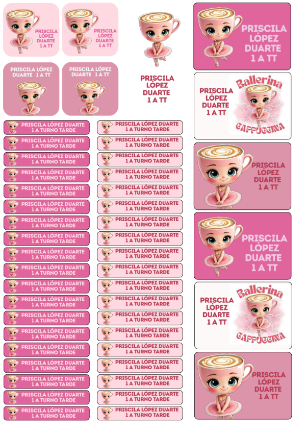 ballerina capuccina Prediseñada Etiqueta escolares Aprueba de agua plancha A4