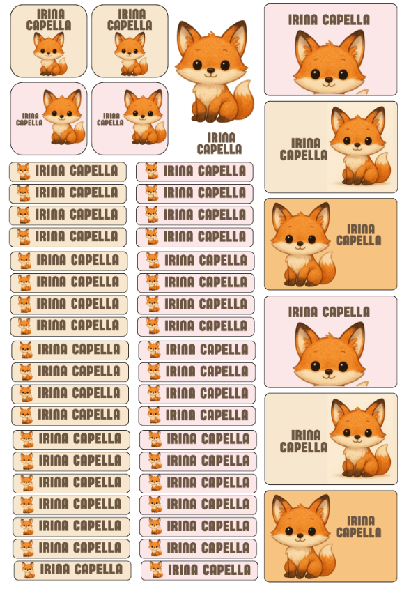 Zorrito acuarela Prediseñada Etiqueta escolares Aprueba de agua plancha A4