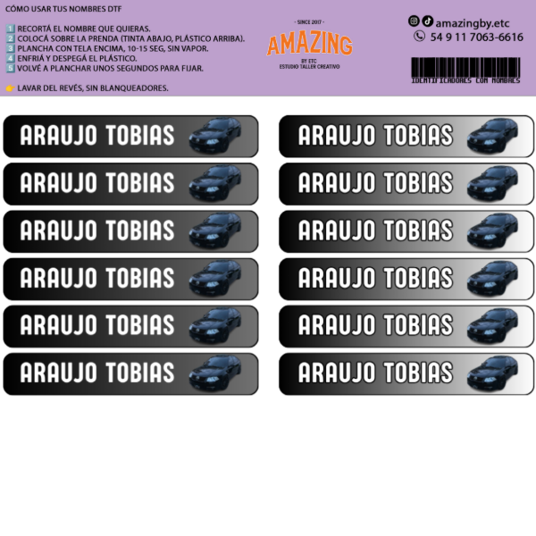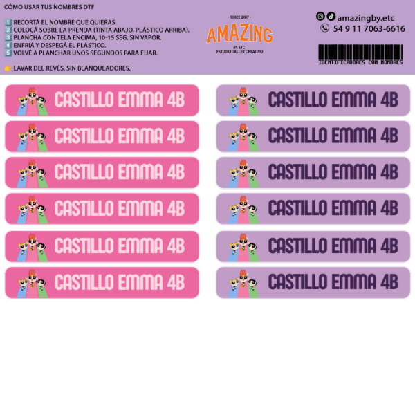 10 nombres para pegar con plancha para identifcar uniformes y ropa. para textiles